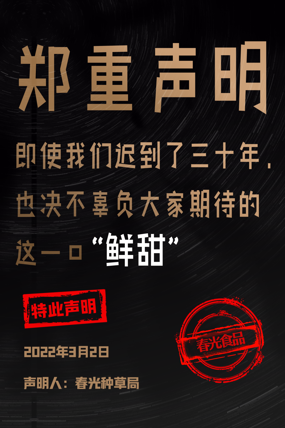 在新品官宣期間,春光食品連發26條新品聲明,用簡單粗暴又不失趣味性的文案高效傳遞了品牌態度與產品賣點,在大量地圍觀和傳播擴散之下,聲明文案成功地吸引了廣大網友的注意力。據了解,接下來春光食品還將開辦線下品鑒會快閃店、圍繞產品設計ip卡通等一系列年輕化動作。